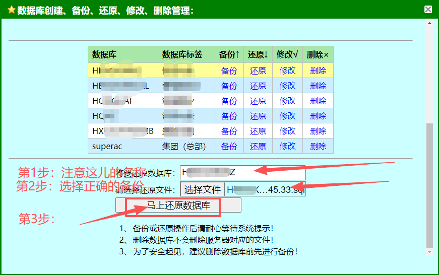 3、恢复数据库的方法(如下图):