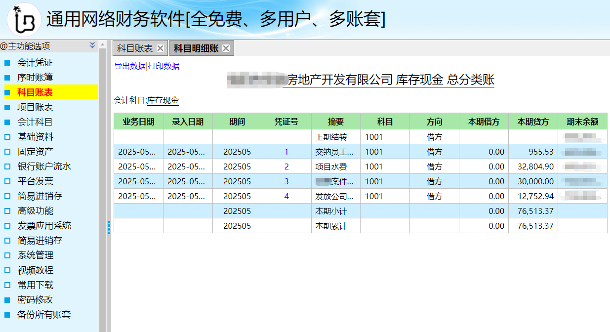 点击会计科目蓝色链接,可直接进入“科目明细账”(如下图):