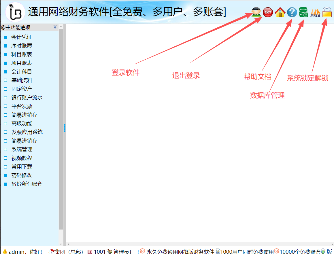 3、安装完成后,单击“通用财务软件系统”,如弹出如下图界面,说明软件已经成功安装。