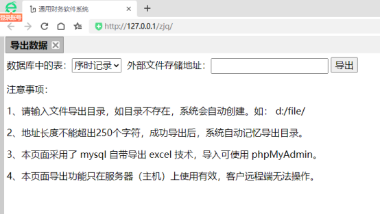 导出数据主要是使用了mysql自带导出功能,导出相关的财务数据。导出功能界面(如下图):