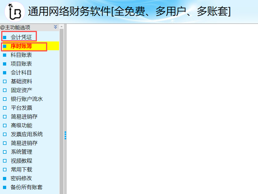 2、修改、删除记账凭证:请点左侧的“序时账簿”按钮后进入序时账簿界面,如下图。