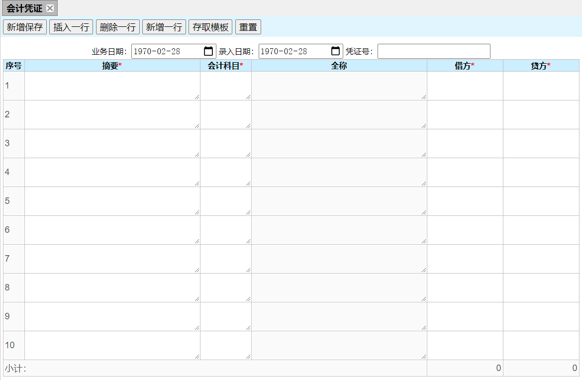 (6)凭证数据行不能出现空值,否则空值后面的数据无效;