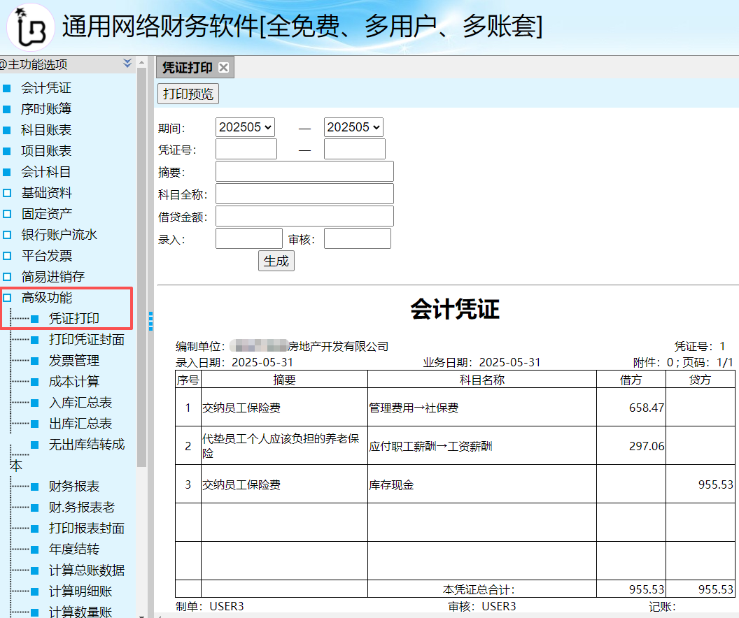 14、凭证打印: