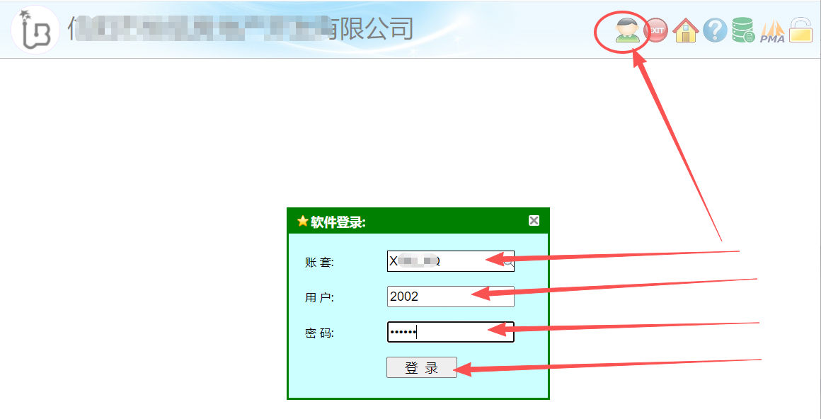 1、现在就可以去登录界面进行新账套登录了(如下图)。
