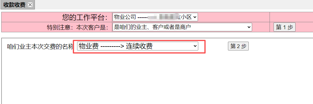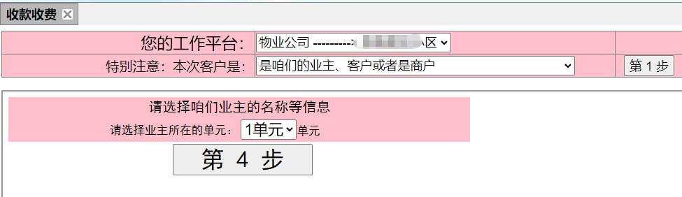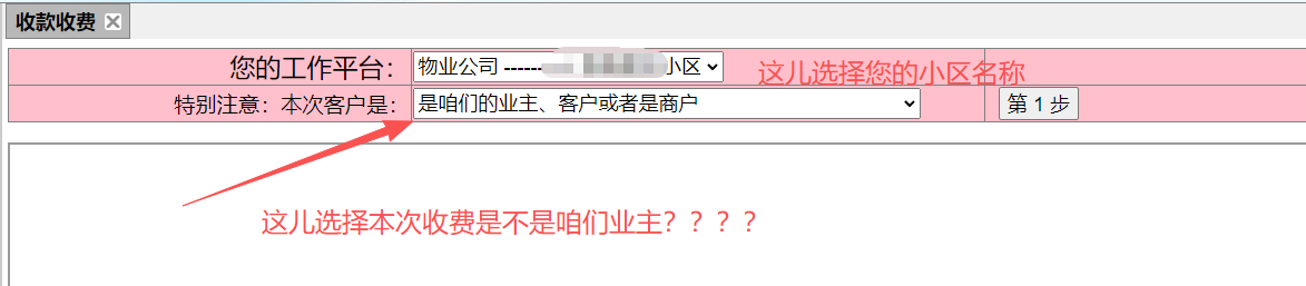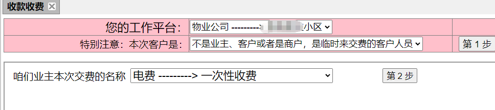 (一)小区业主(客户或者商户)收费操作步骤: