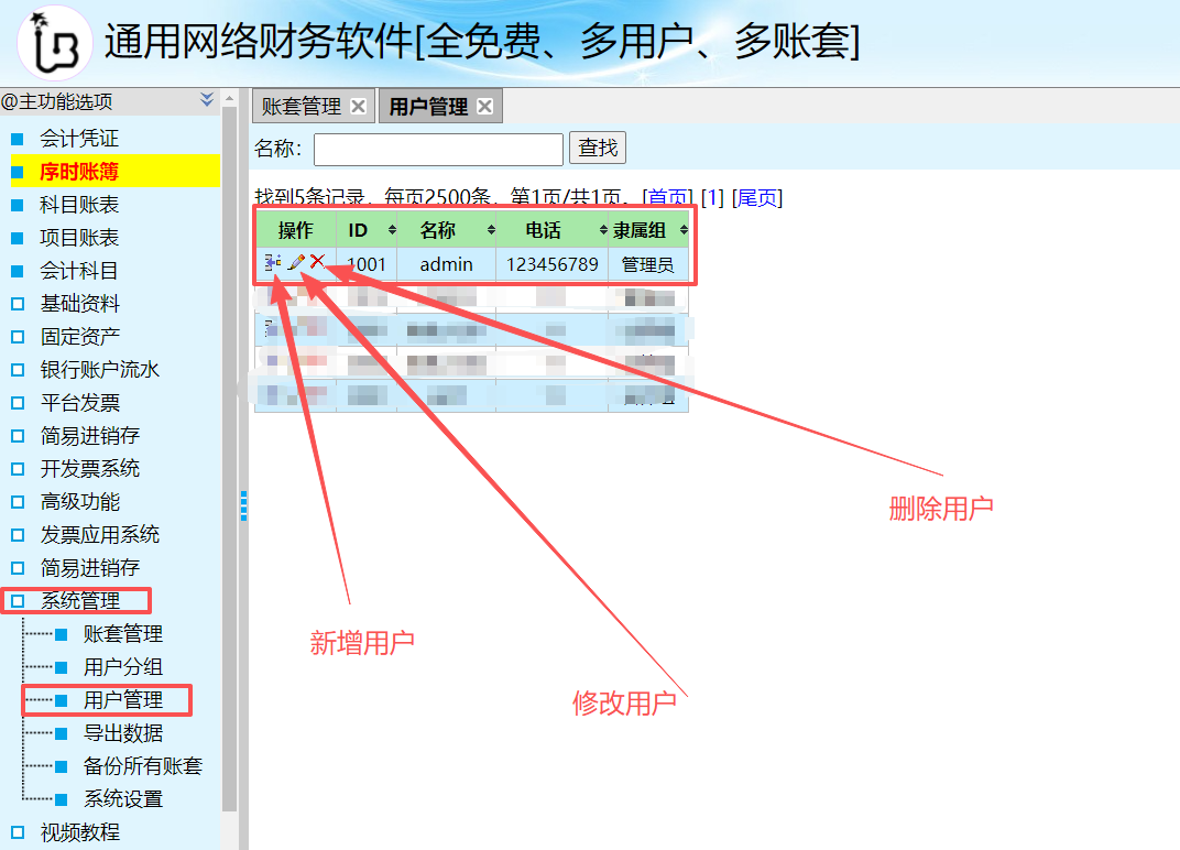(2)修改用户、删除用户:请参照上方新增用户操作。