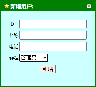 在下图中添加相应的编号ID、用户名称、电话,并选择相应的分组: